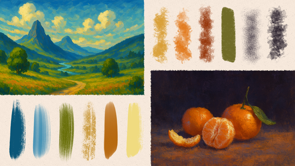 • 10 Dry Media – Inspired by charcoal, graphite, and pastels for textured strokes.
